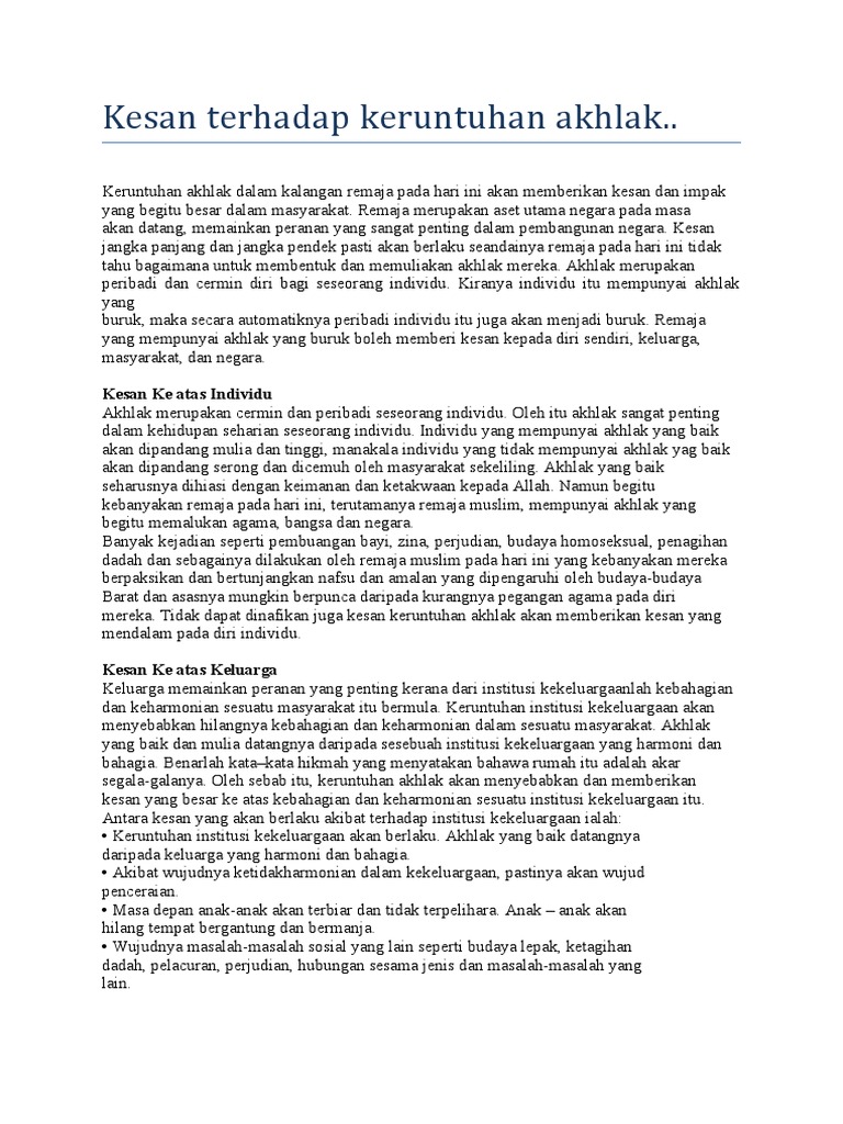 Doc Keruntuhan Moral Di Kalangan Remaja Siapakah Yang Harus Dipersalahkan Cathy Nallu Academia Edu