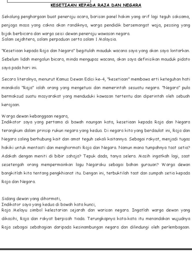 Esei Kesetiaan Kepada Raja Dan Negara