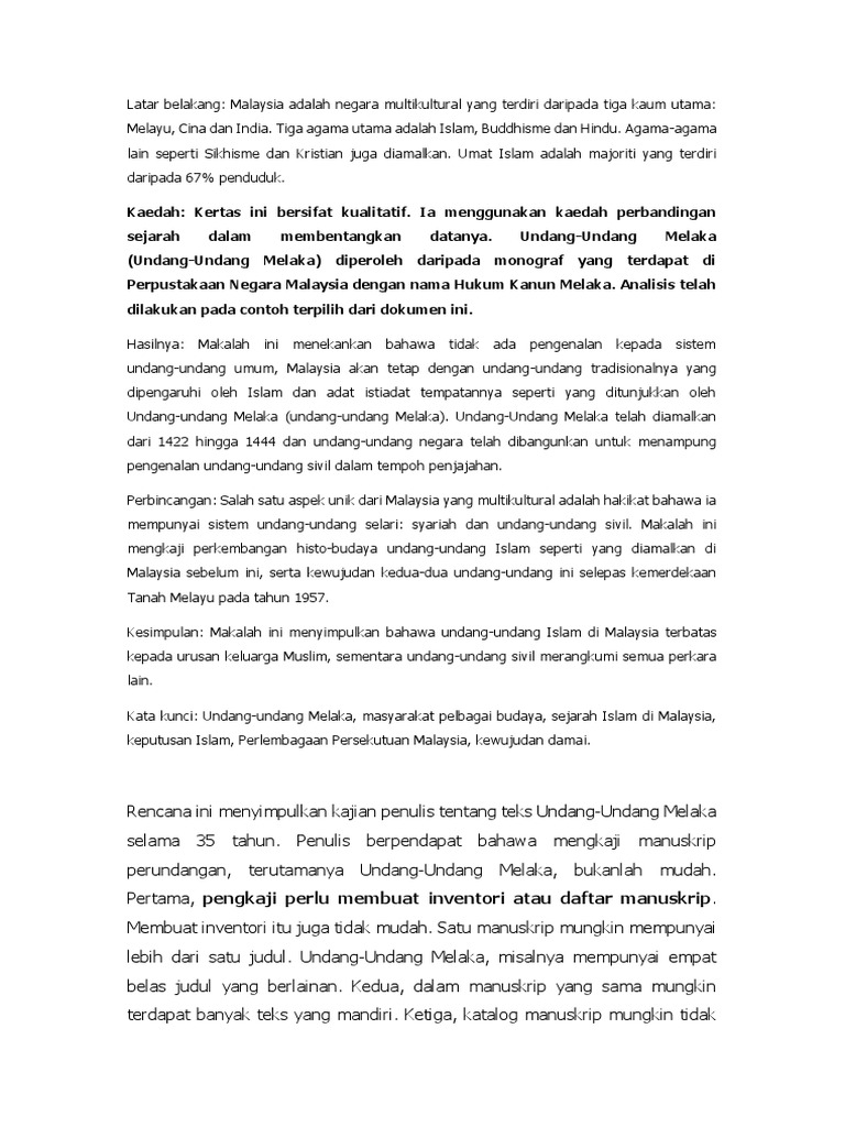 Bmu Contoh Kertas Cadangan Bahasa Melayu Undang Undang 1 Studocu