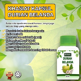 Walaupun begitu buah dengan duri dibagian luarnya ini masih menjadi buah favorit untuk dinikmati. Salah satu perusahaan ubat terbesar di amerika dengan aset jutaan dollar melakukan penyelidikan luar biasa pada pohon durian belanda atau graviola yang tumbuh dihutan amazon ini. Hanya rm45 untuk 25 kali minum.