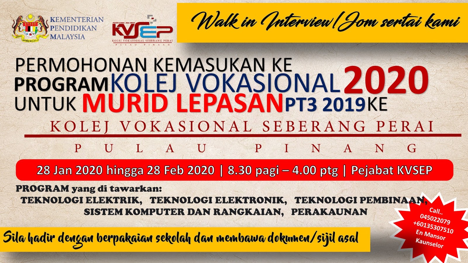 Kolej Vokasional Seberang Perai Walk In Interview