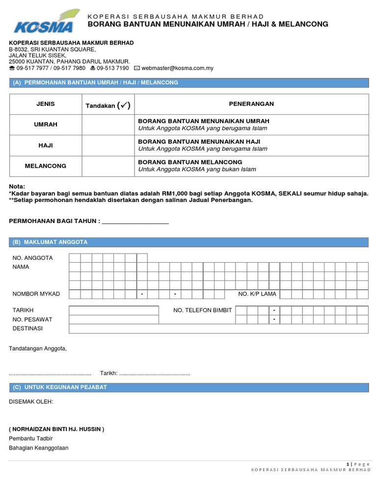 Borang Bantuan Menunaikan Umrah Haji Melancong Koperasi Serbausaha Makmur Berhad