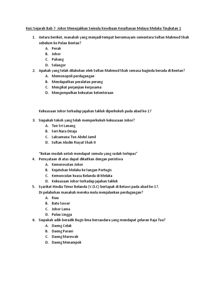 Kuiz Sejarah Tingkatan 1