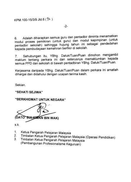 Surat Pelaksanaan Kursus Ithink Secara Luar Talian Kilt Di Semua Sekolah Di Bawah Inisiatif 20pppm