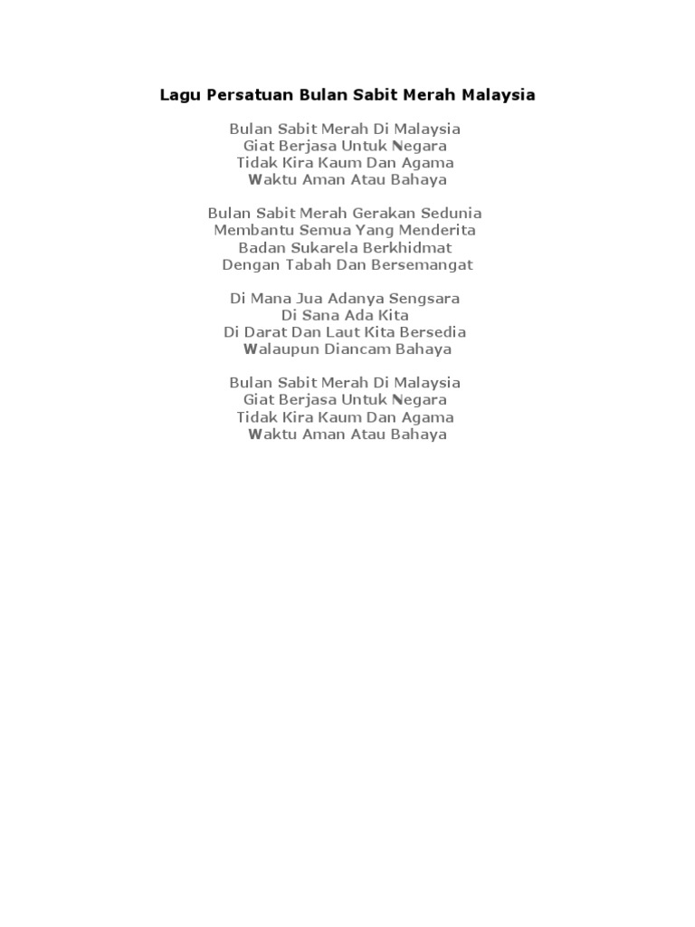 Lirik Lagu Bulan Sabit Merah Malaysia