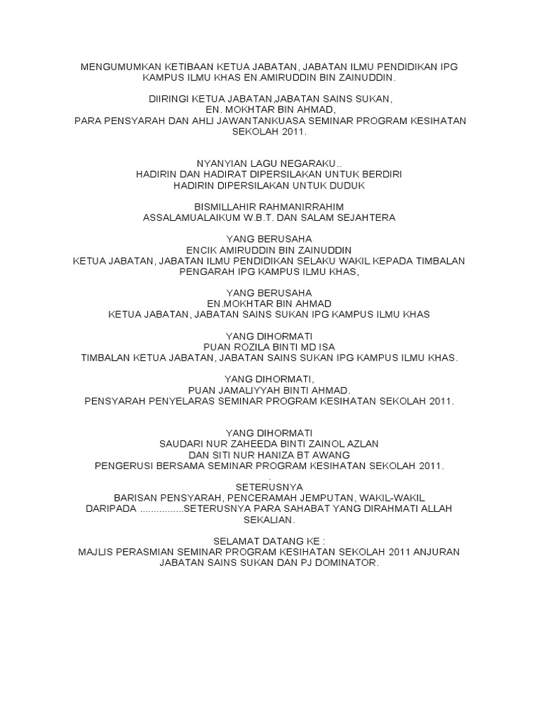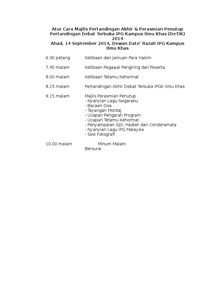 Atur Cara Majlis Pertandingan Debat Doc Document