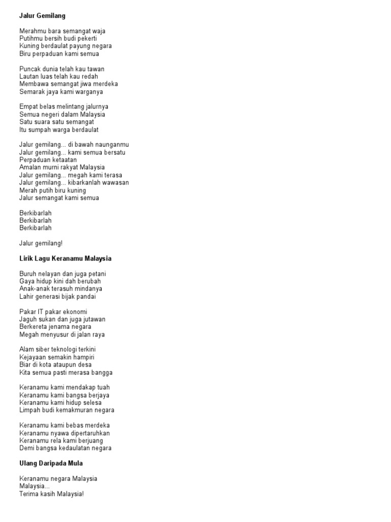 Jalur Gemilang Lirik Lagu Merdeka Malaysia