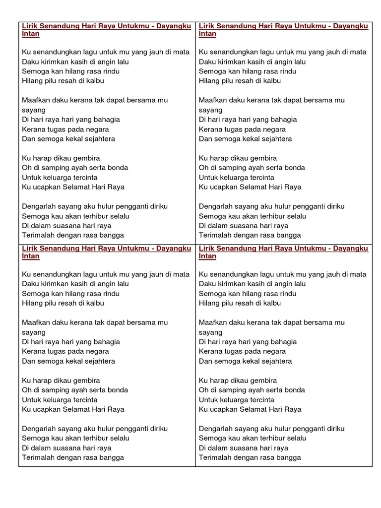 Lirik Senandung Hari Raya Untukmu