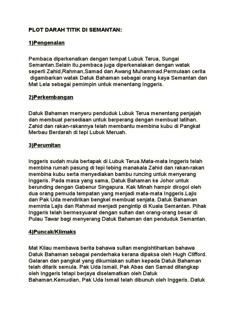 Sinopsis Darah Titik Di Semantan Komsas Tingkatan 2