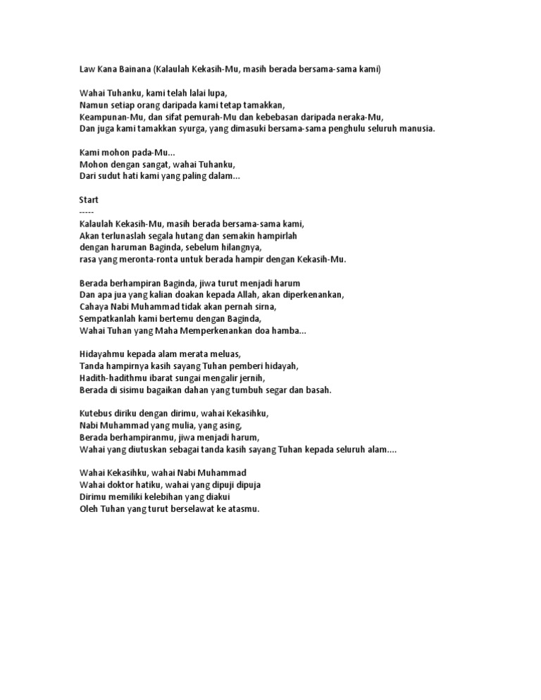 Lirik Law Kaana Bainana Arab Dan Rumi Ustaz Moden S Weblog