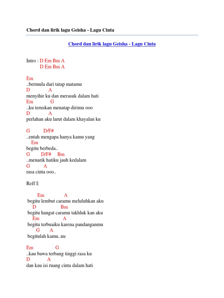 Chord Dan Lirik Lagu Geisha Lagu Cinta Dembma Dembma Em D A Em G D A