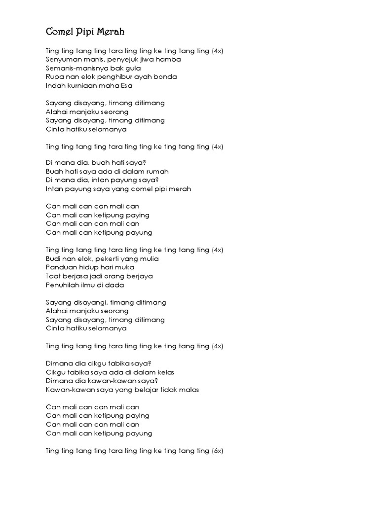 Tag Chord Comel Pipi Merah Siti Nurhaliza Chord Kunci Gitar Lirik Lagu Comel Pipi Merah Siti Nurhaliza Ting Tang Ting Tang Tribun Padang