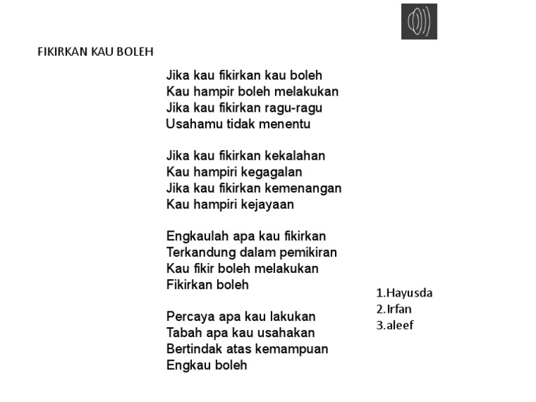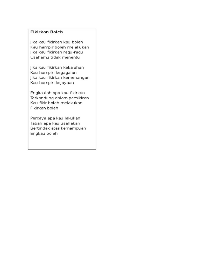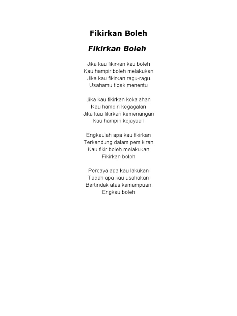 Lirik Lagu Motivasi Fikirkan Boleh Youtube