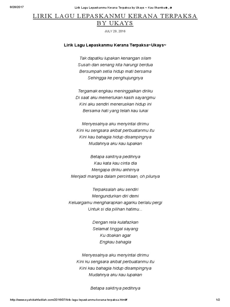 Lirik Lagu Lepaskanmu Kerana Terpaksa By Ukays Kau Ilhamku