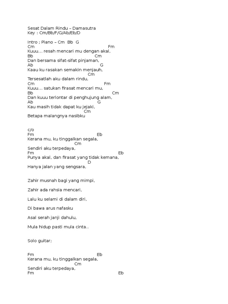 Sesat Dalam Rindu Damasutra Kumpulan Lirik Lirik Lagu