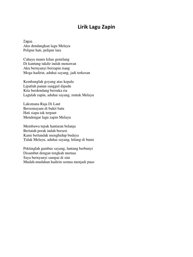 Lirik Lagu Docx Lirik Lagu Laksamana Raja Di Laut Zapin Aku Dendangkan Lagu Melayu Pelipur Hati Pelipur Lara Cahaya Manis Kilau Gemilau Di Kampung Course Hero
