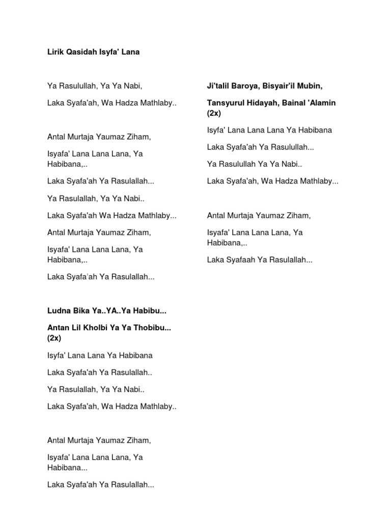 Kumpulan Lirik Sholawat Dan Religi Latin Ya Rasulullah Ya Nabi Wattpad