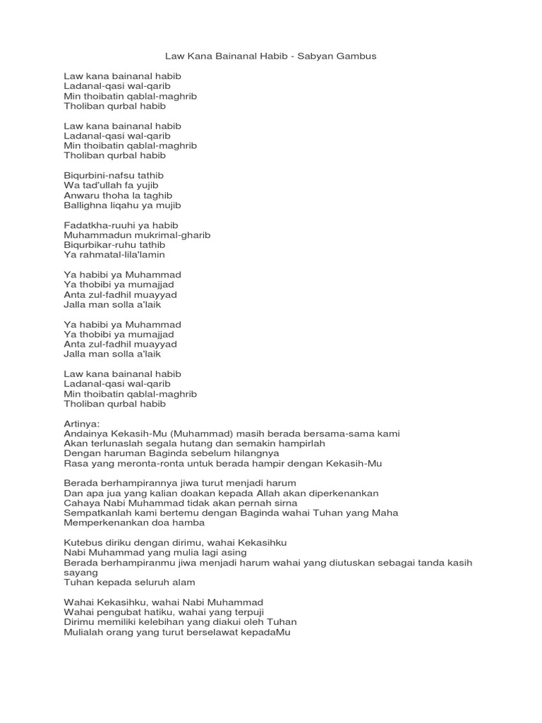 Lirik Lagu Law Kana Bainanal Habib Kumpulan Contoh Pidato Dan Pantun Ter Populer